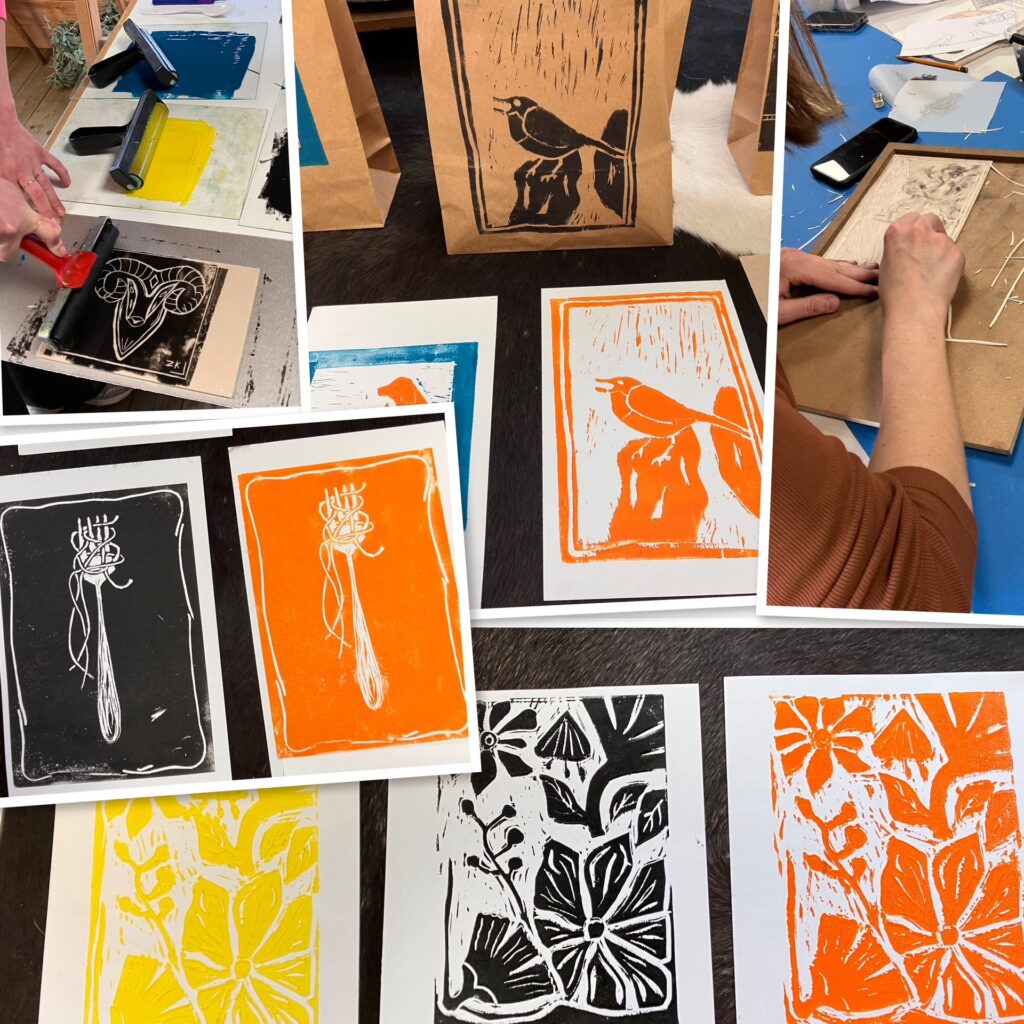 Heerlijk met linoleum en een gutsje de mooiste creaties snijden en daarna een afdruk maken die je keer op keer kunt afdrukken. Heel duurzaam dus. Lino-snijden is ambachtelijk werken en wordt als heel ontspannend ervaren. Je kunt verschillende soorten Lino’s maken, bijvoorbeeld:
